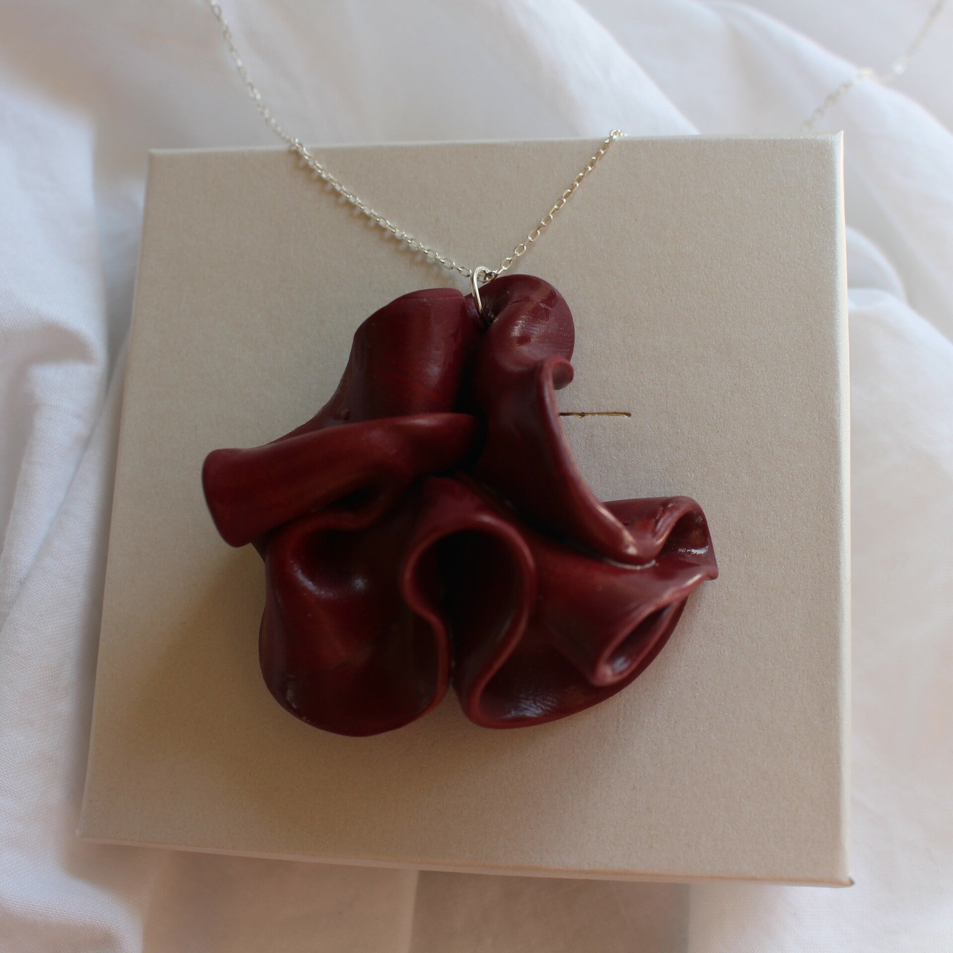 - lengte ketting: Sterling zilver 45 cm- kleur: paars- Materiaal: Polymeerklei, vernis, Ag925 (zilver) ringetje