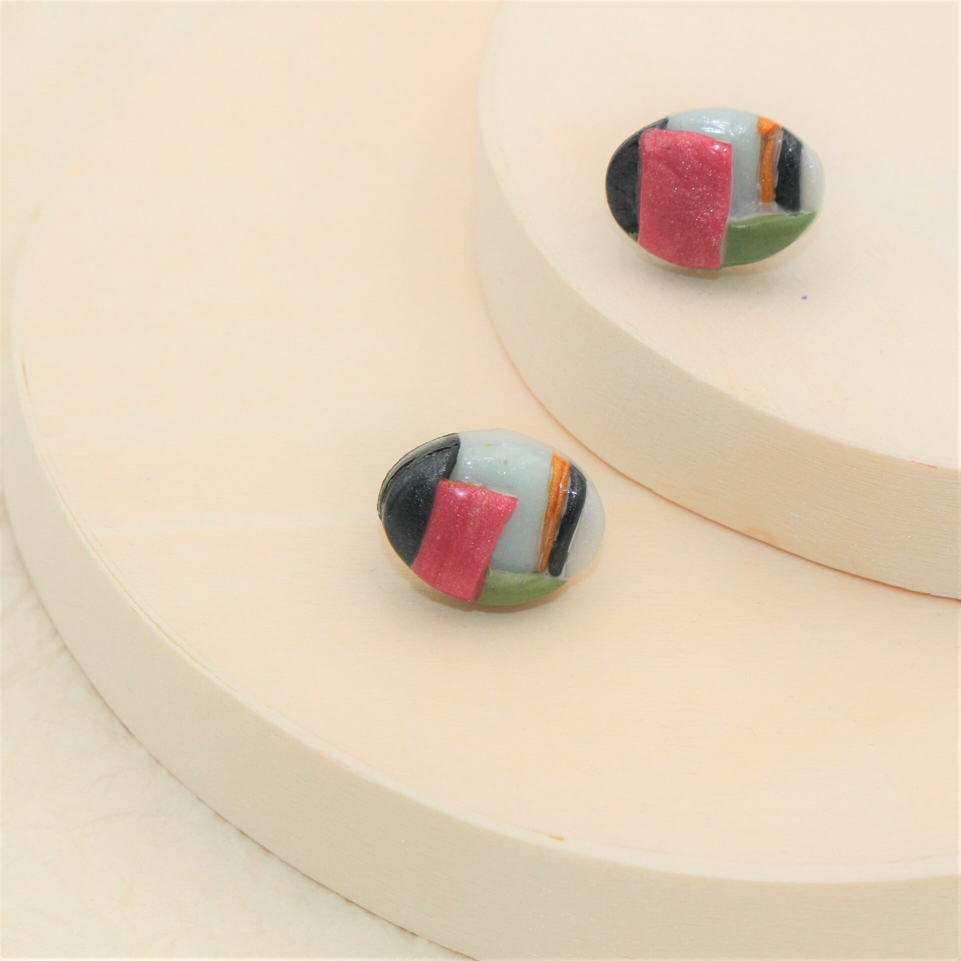 - Materiaal: Polymeerklei, vernis en Ag925 (zilver) oorstekers