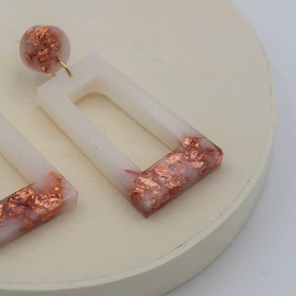 Materiaal: Hoogwaardig epoxy giethars, Ag925 (verguld zilver) oorstekers en bladmetaal (roze), licht om dragen