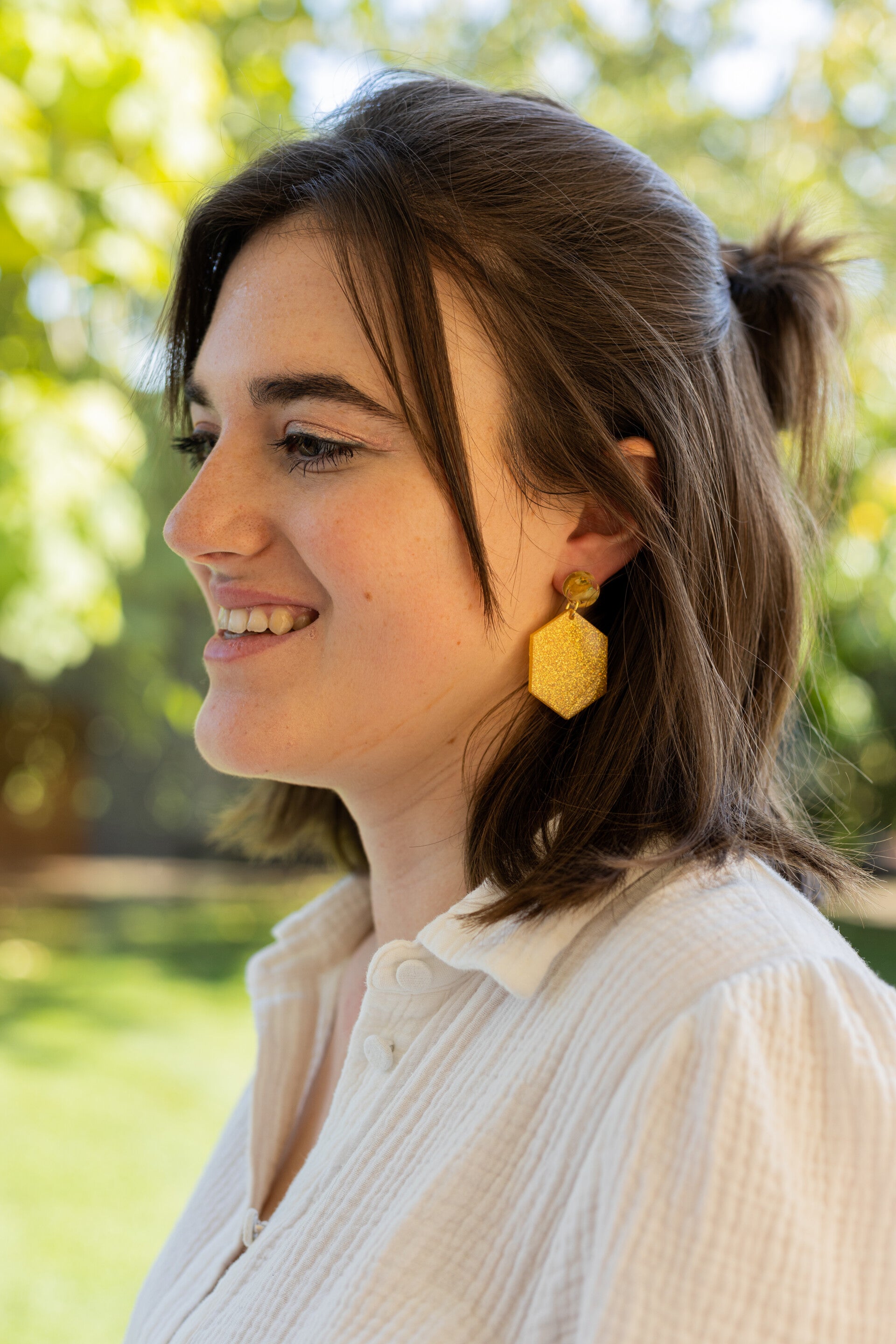 Materiaal: Hoogwaardig epoxy giethars, Ag925 (verguld zilver) oorstekers en ringetjes