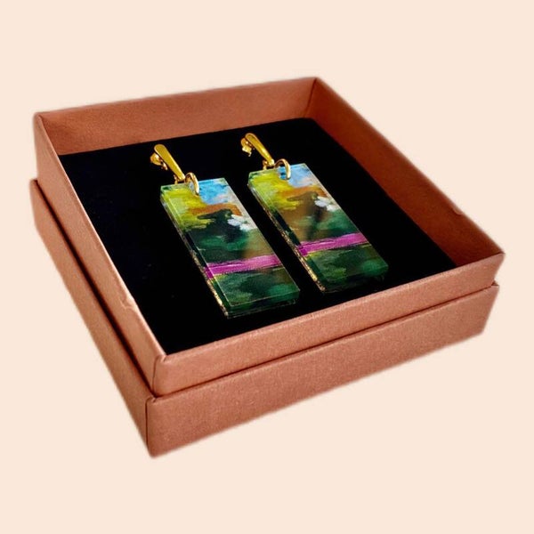 Pièce Artistique, designed and handmade by Phaedra in her petit atelier in Belgium. A carefully selected colourful detail from her oilpainting Floraison is transformed into a statement jewel. The result of this sophisticated process is an artistic and wearable statement piece rising above trends.