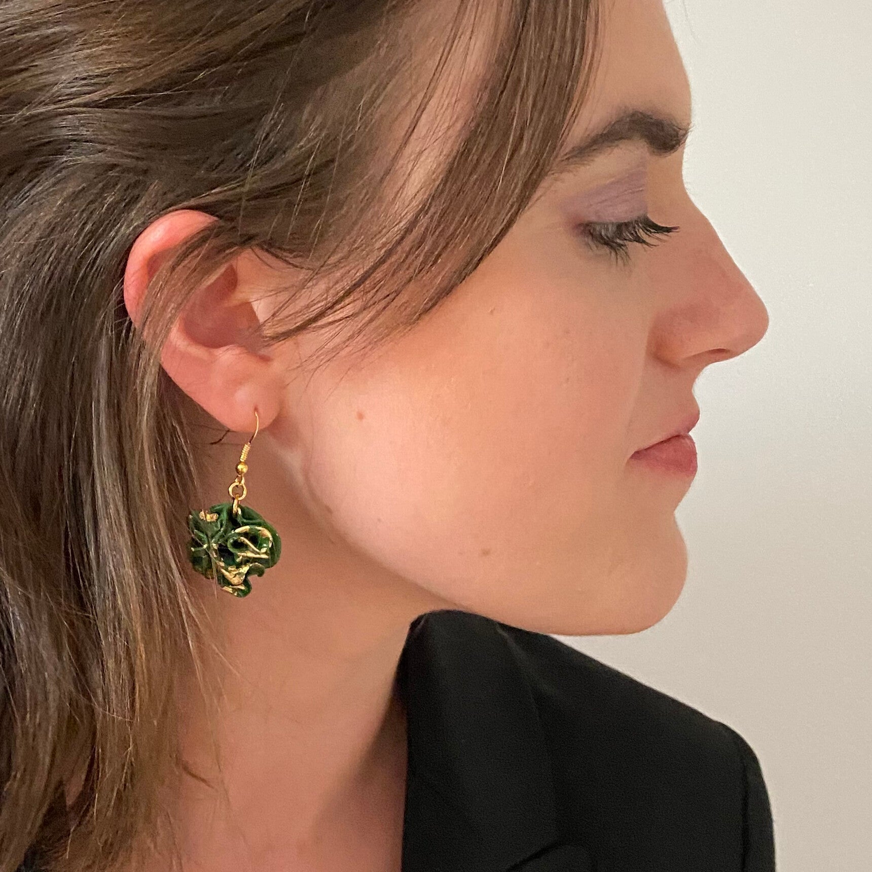 - Material: Oven-hardening modelling clay with a layer of varnish, acrylic, gold leaf, 18K gold plated.